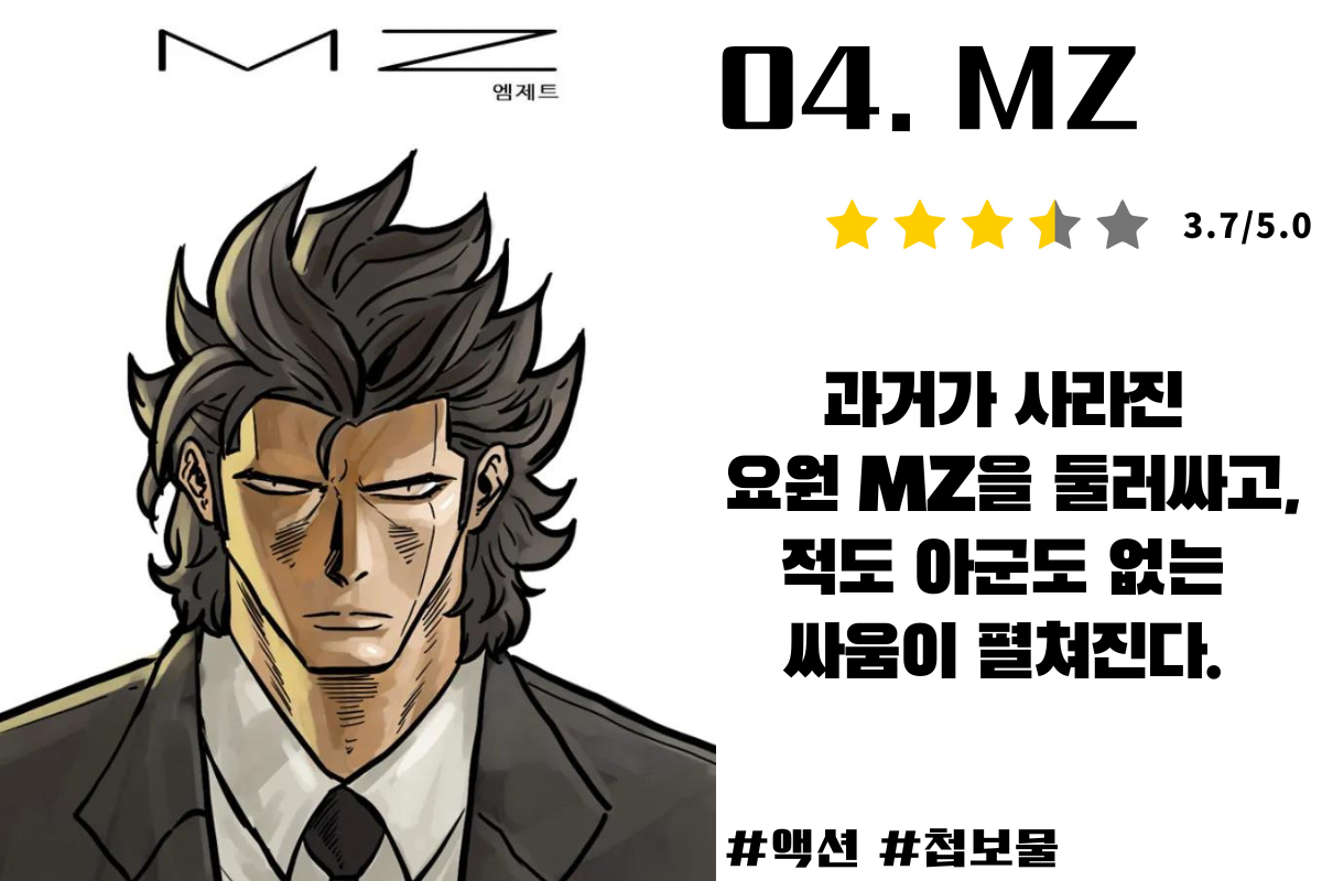 액션의 퀄리티가 높은 웹툰으로 선이 굵은 느낌으로 웹툰을 그리셔서 투박한 느낌이 들 수 있나 한눈에 들어온다는 장점이 있어 보면서 마음에 잘 맞는 사람들은 큰 재미를 느끼는 웹툰입니다.