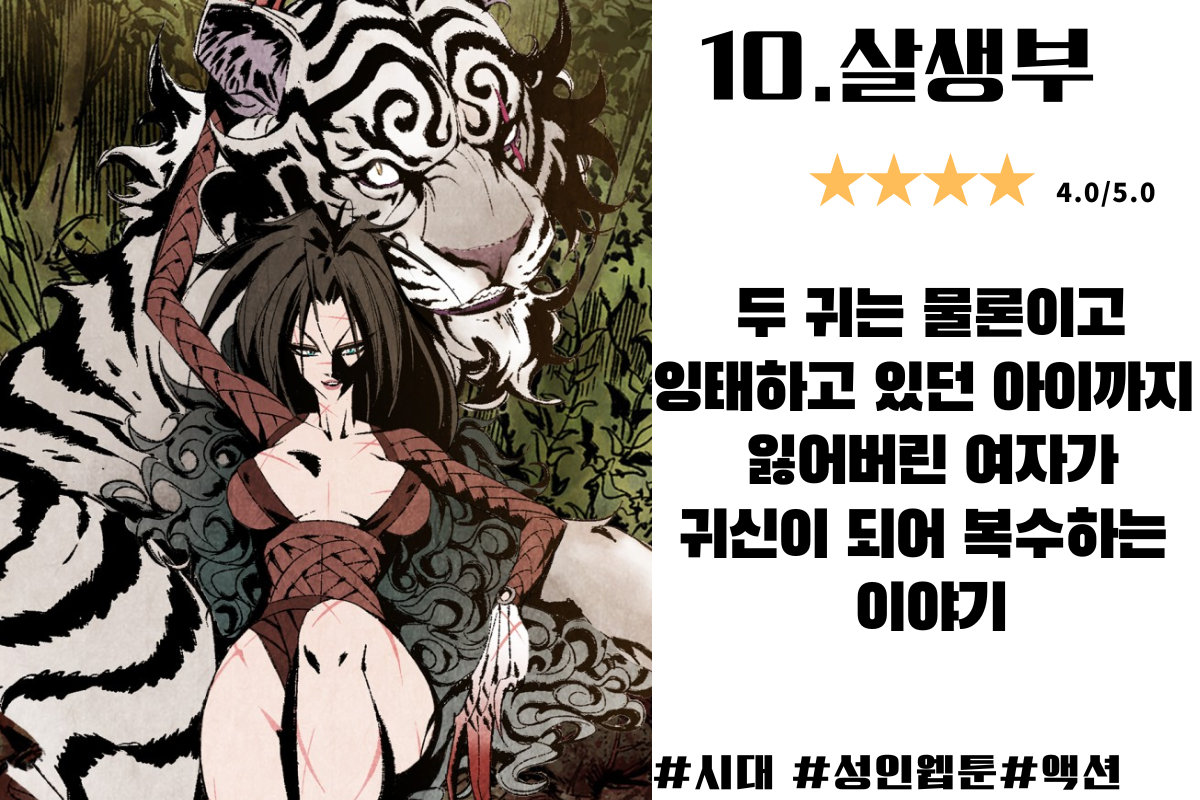 조선시대의 살생부라는 소재와 실제 역사를 어느 정도 반영하고 있고 여성이지만 괴물 같은 액션을 통해서 재밌다고 느꼈었던 웹툰입니다.