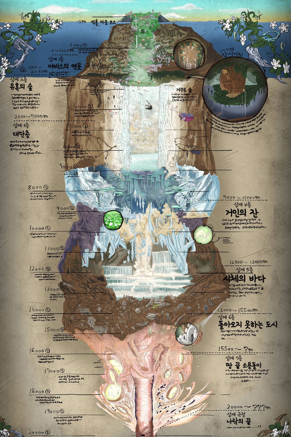 설정이 아주 신기하며 어비스라고 불리는 공간 내에서의 물건이나 생태계 등에 대한 디테일이 굉장한 작품입니다,