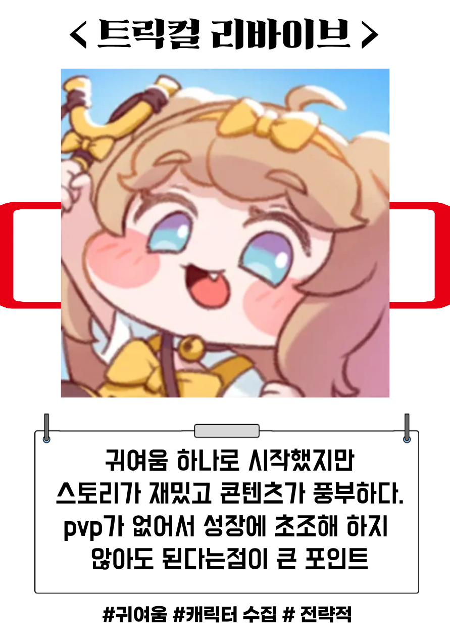 지금 플레이한지 일주일정도 되었는데 나름 재밌다고 생각합니다. 아직 모르는 것도 많지만 게임 쉬우면서도 운 적인 요소와 전략적인 요소가 공존하는 게 마음에 들며 귀여운 캐릭터를 보는 재미가 가장 큰 것 같습니다. 그리고 스토리가 생각보다 진국입니다. 모바일 게임에 많은 시간을 쓰지 못하시는 분들에게 추천드립니다.